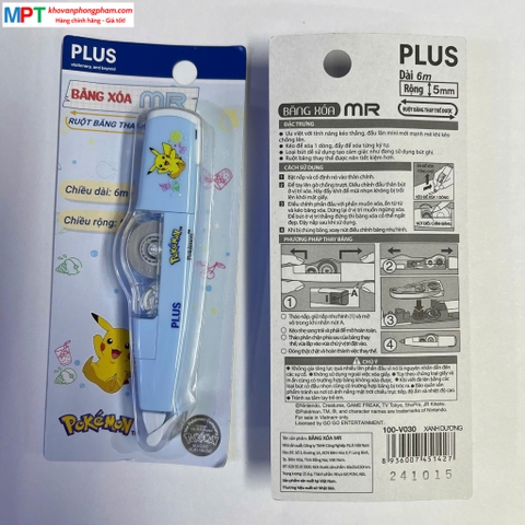 Băng xóa PLUS MR POKEMON 5mm x 6m - Màu xanh dương 100-V030