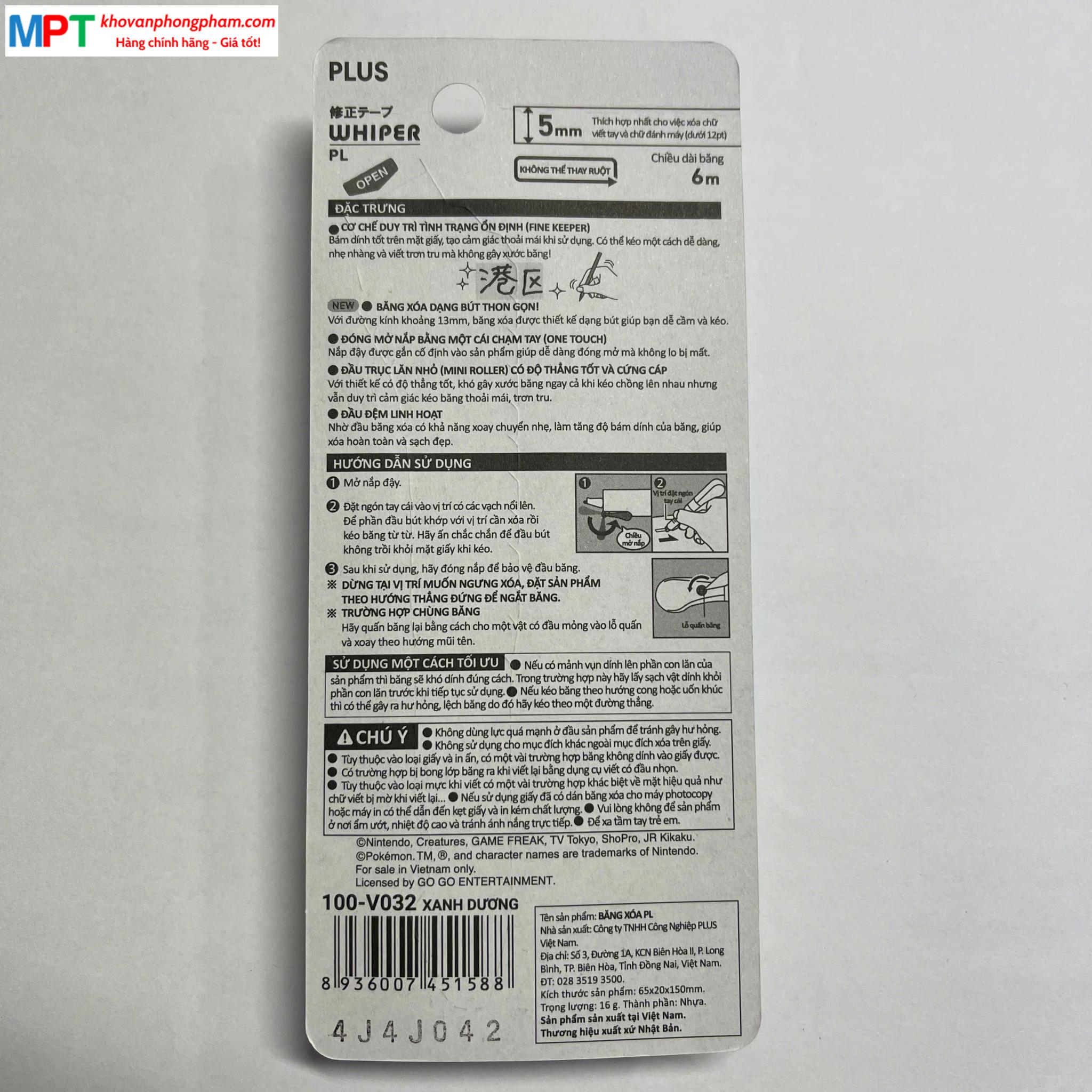 Băng xóa PLUS MR POKEMON 5mm x 6m - Màu xanh dương 100-V030