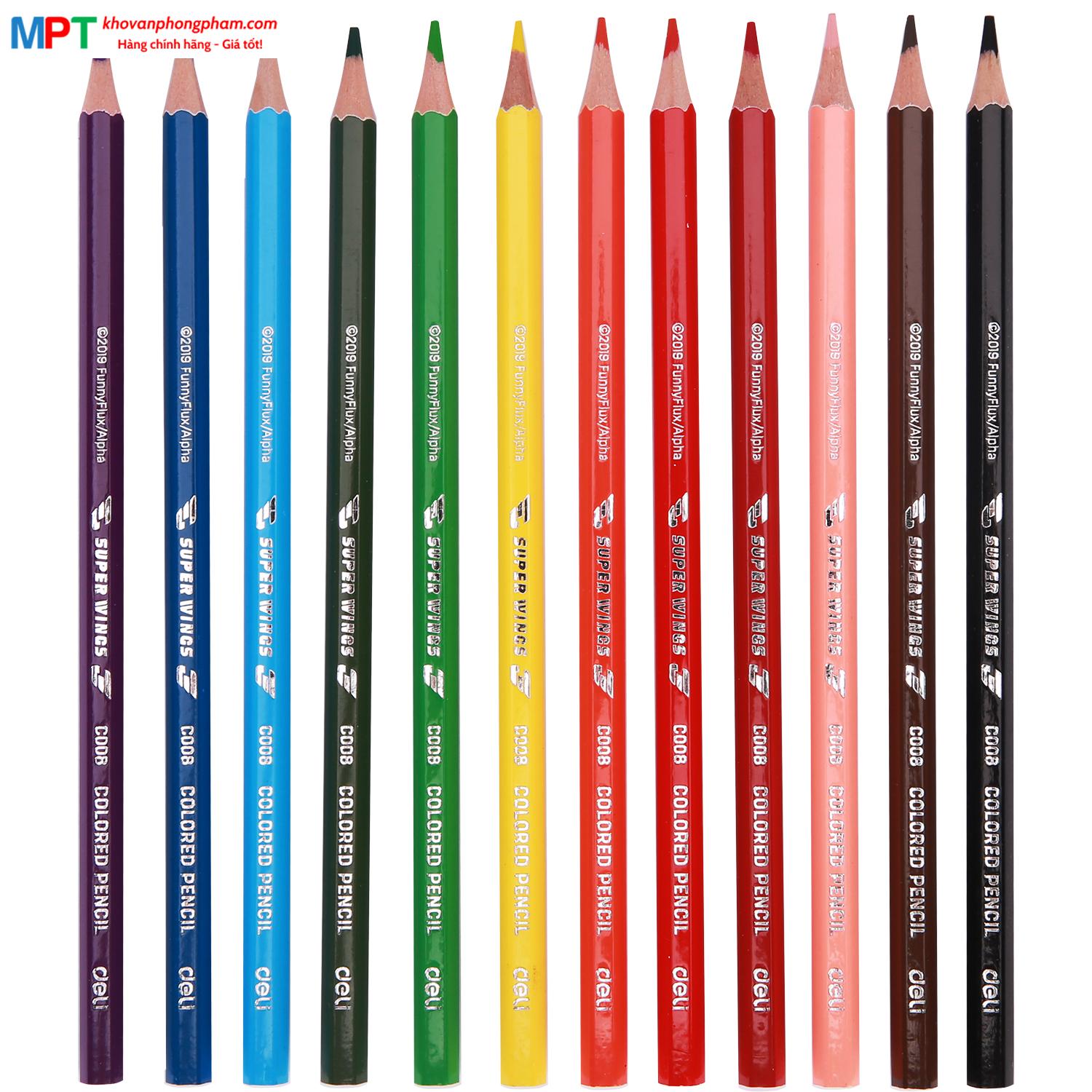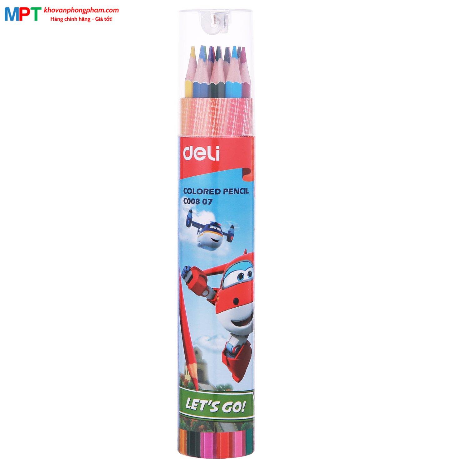 Bút chì màu 12 màu Deli EC00807 - Họa tiết Super Wings kèm gọt chì
