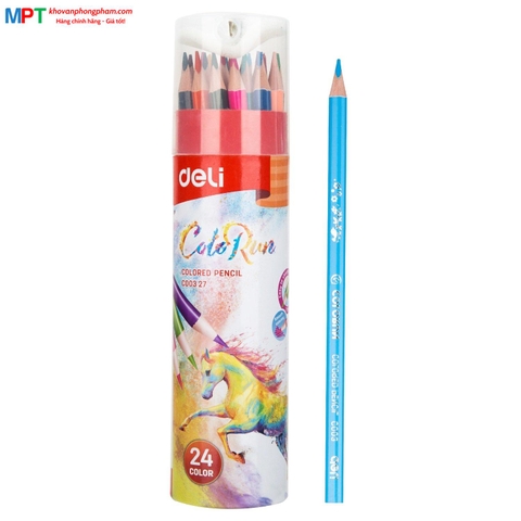 Bút chì màu 24 màu Deli EC00327 - ColoRun, cốc giấy, kèm gọt chì