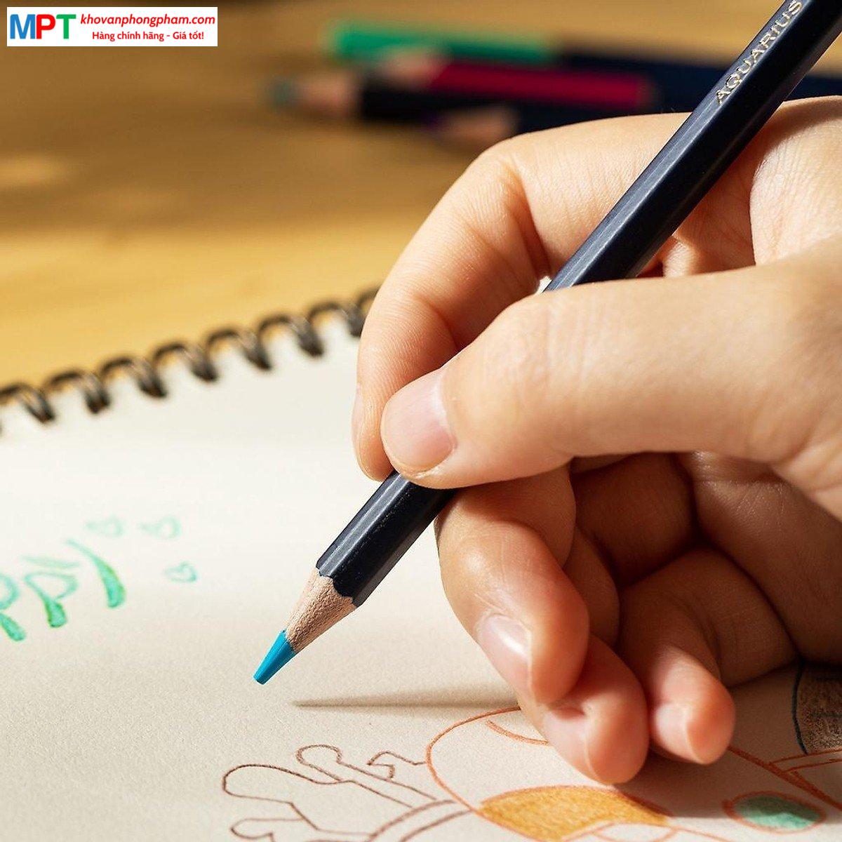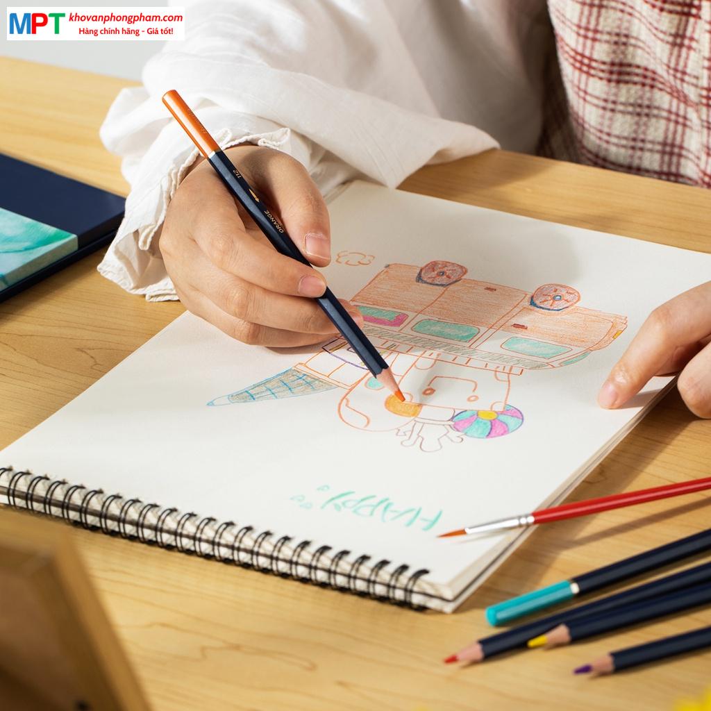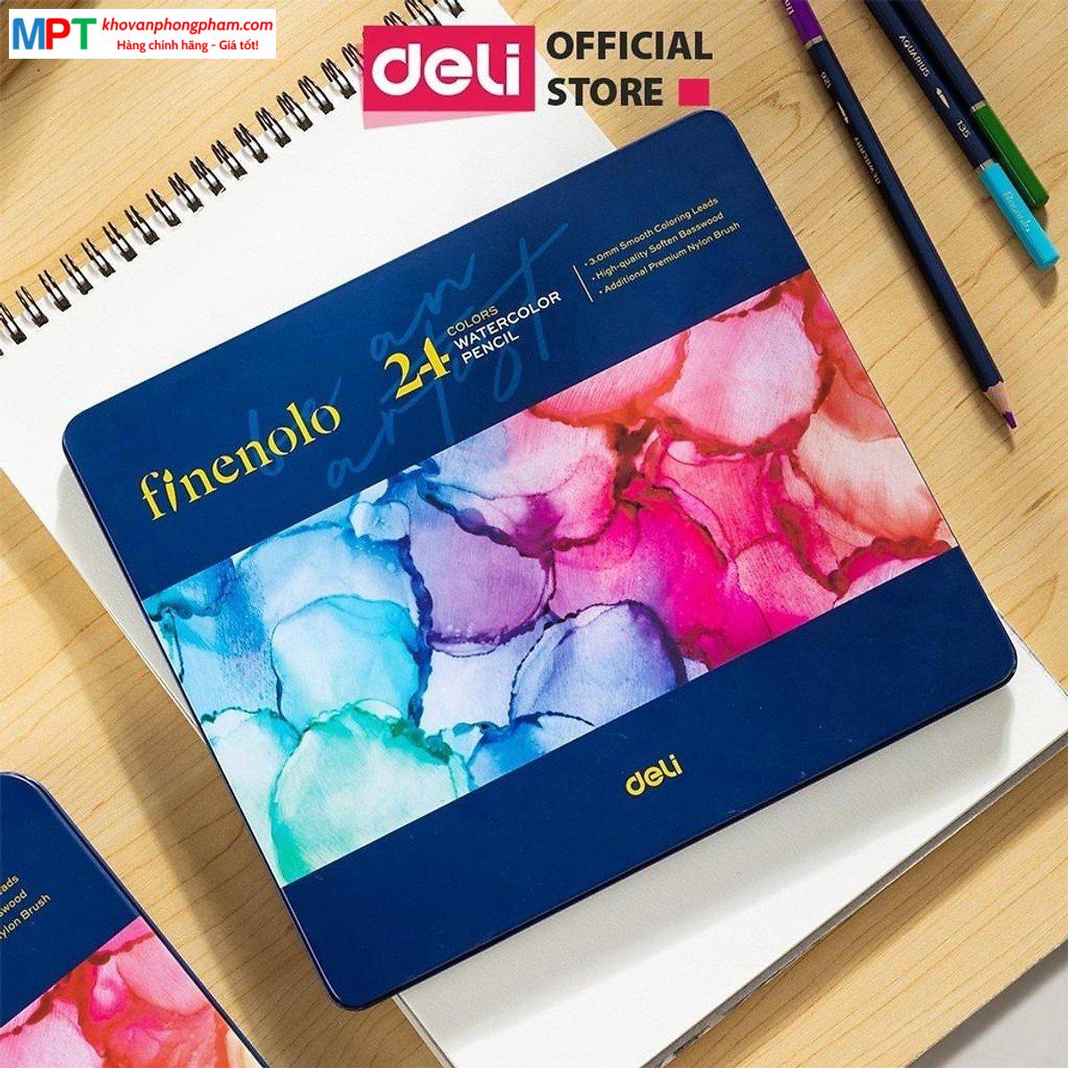 Bút chì màu gốc nước cao cấp 24 màu hộp thiếc kèm cọ tán Finenolo Deli EC129-24 (Tặng kèm giấy nhớ 3 size)