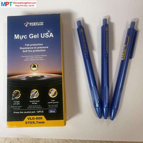 Bút gel bấm Việt Lợi VLG-809 ngòi 0.7mm - Mực xanh