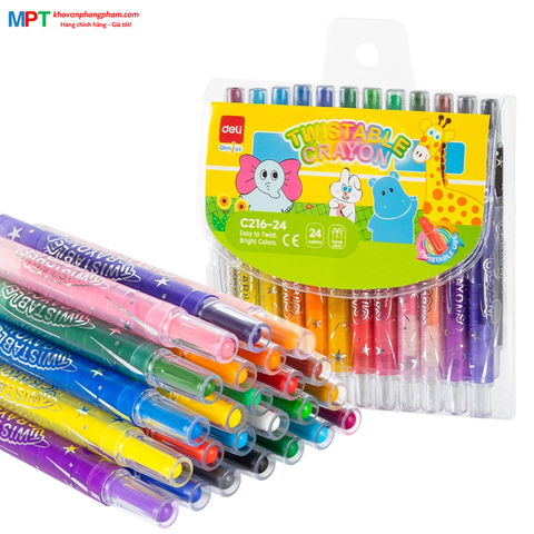 Bút sáp vặn ngắn 24 màu Deli EC216-24
