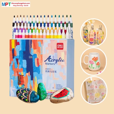 Bút sơn Acrylic Marker cao cấp 36 màu Deli HM911-36 - Chống nước vẽ trên mọi chất liệu, Tô màu DIY vẽ giày vải, chai lọ