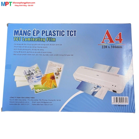 Giấy ép Plastic khổ A4 dày 70 MIC TCT A4-70 - KT:220x316mm