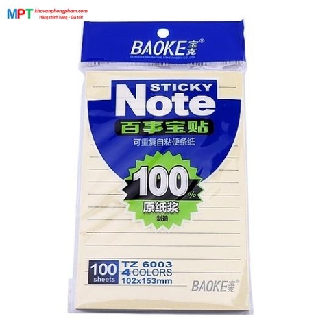 Giấy nhớ có dòng kẻ 4 màu Pastel Baoke TZ6003 (102x153mm, 100 tờ/tập)