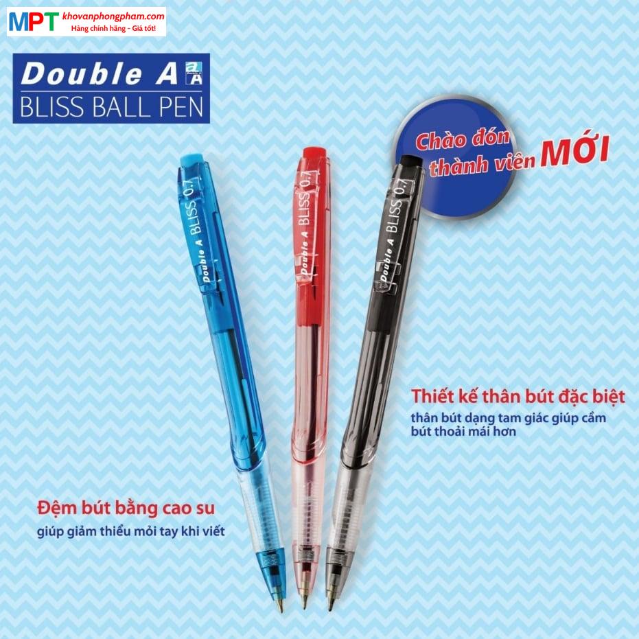 Hộp 12 bút bi Double A BLISS BALL PEN DBP-707-BB11 ngòi 0.7mm - Tặng kèm 3 bút