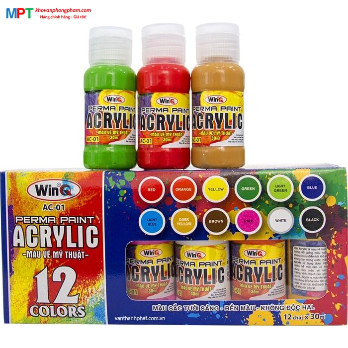 Hộp 12 lọ màu Acrylic WinQ AC-01 (Lọ 30ml)