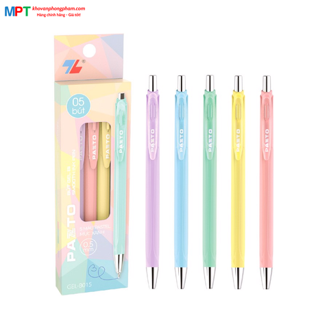 Hộp 5 Bút gel bi màu Pastel Thiên Long Pazto GEL B015 nét 0.5mm - Mực xanh