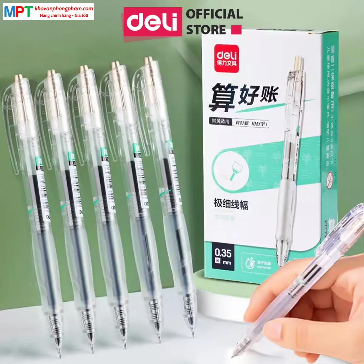 [MUA 10 TẶNG BÚT CHÌ] Bút gel Deli SA130 ngòi 0.35mm - Mực đen, đều mực, ngòi nhỏ