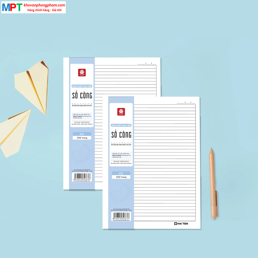Ruột sổ còng khổ A5 Hải Tiến 200 trang 6676 - Dòng kẻ ngang, KT: 150x210mm - Định lượng 100gsm