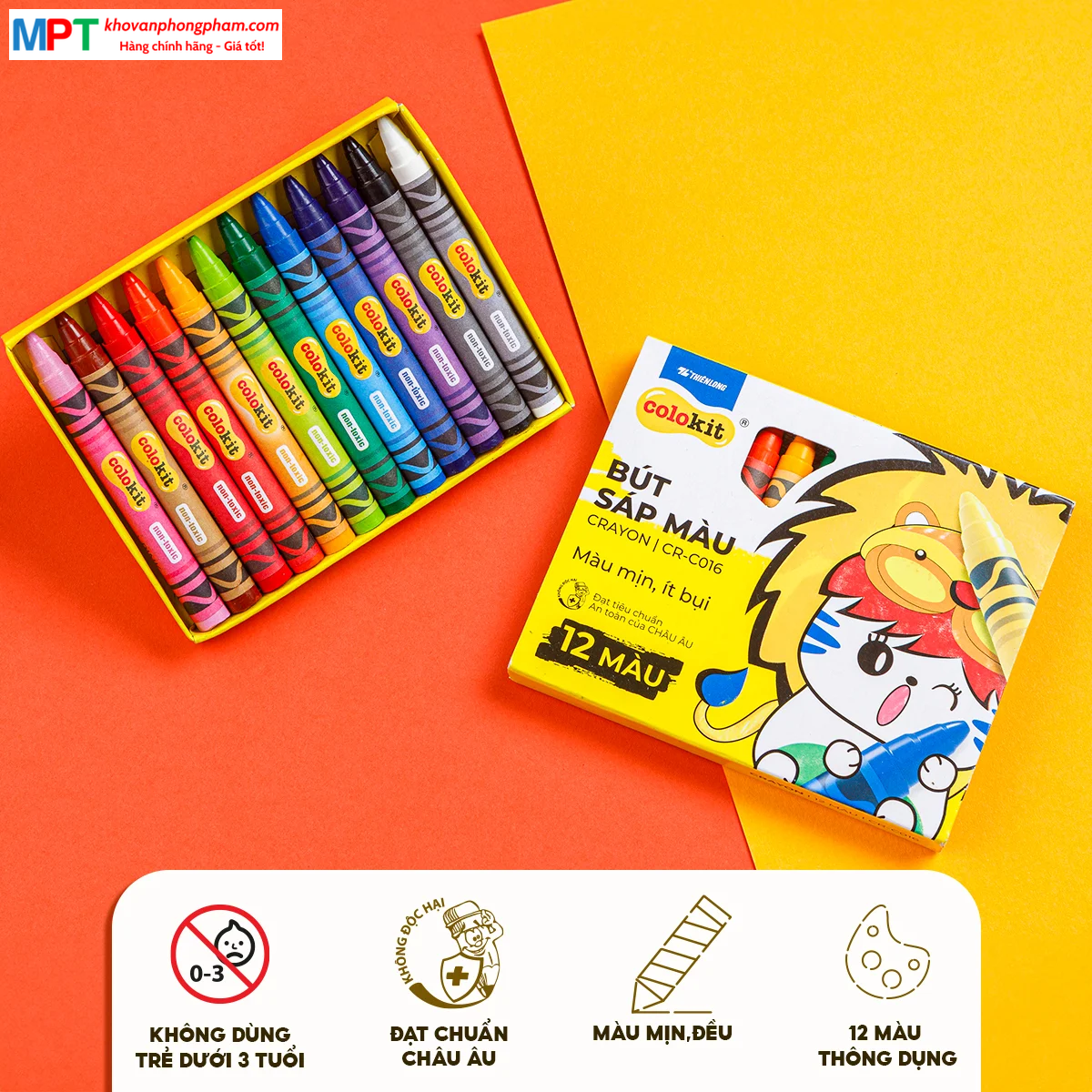 Sáp màu Thiên Long 12 màu CR-C016 - Mua từ 200 hộp chiết khấu 5%