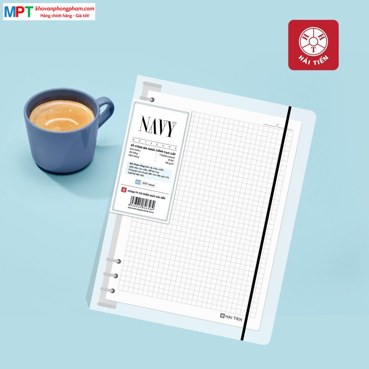 Sổ còng bìa nhựa cứng NAVY 200 trang 6584 - Dòng kẻ Caro (Khổ B5 - 9 còng)