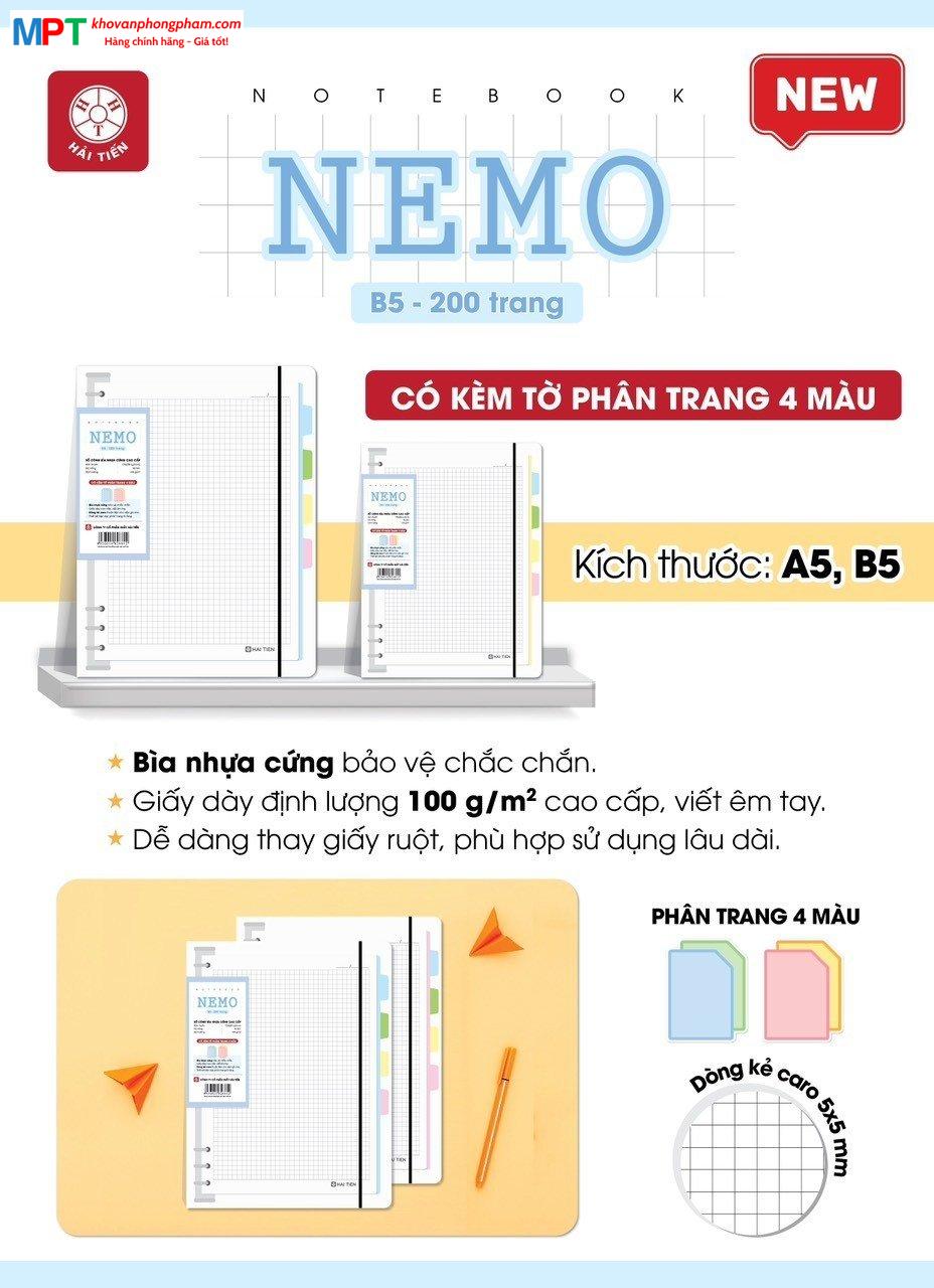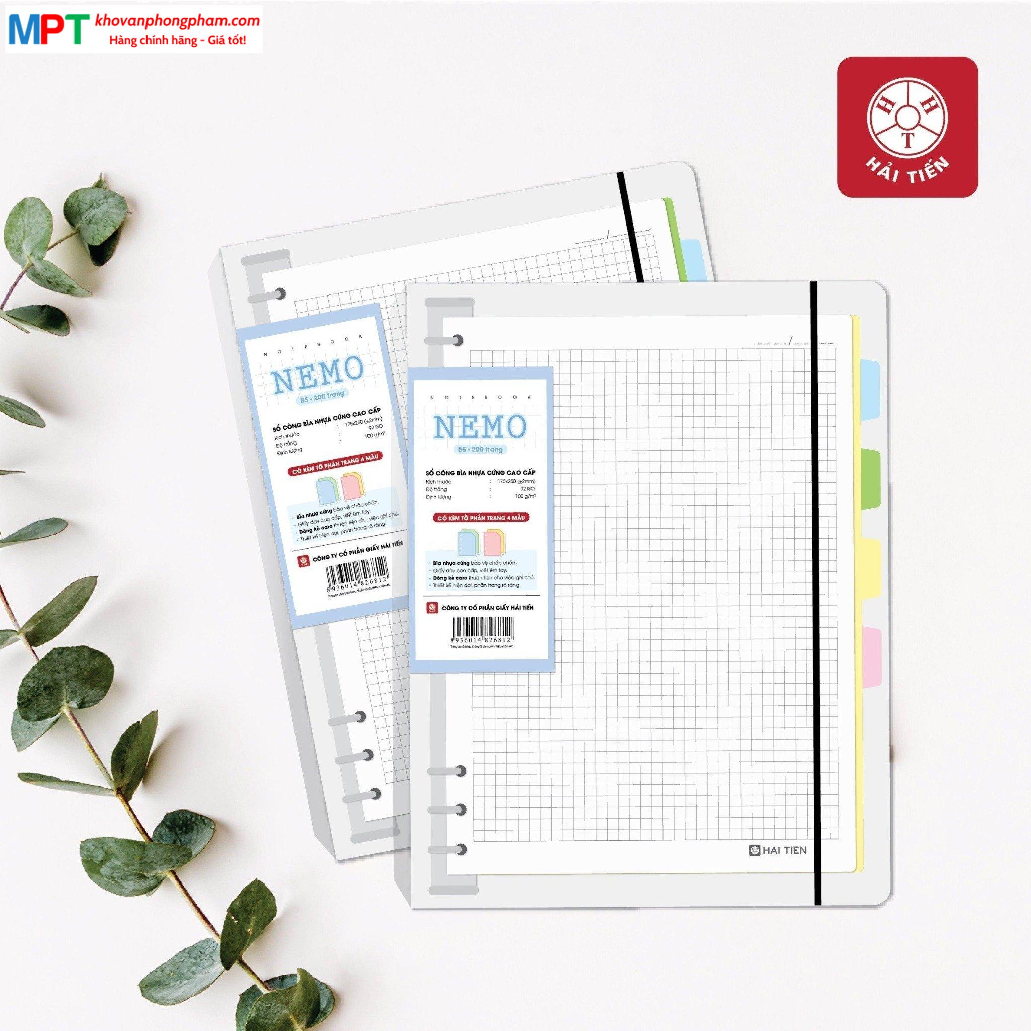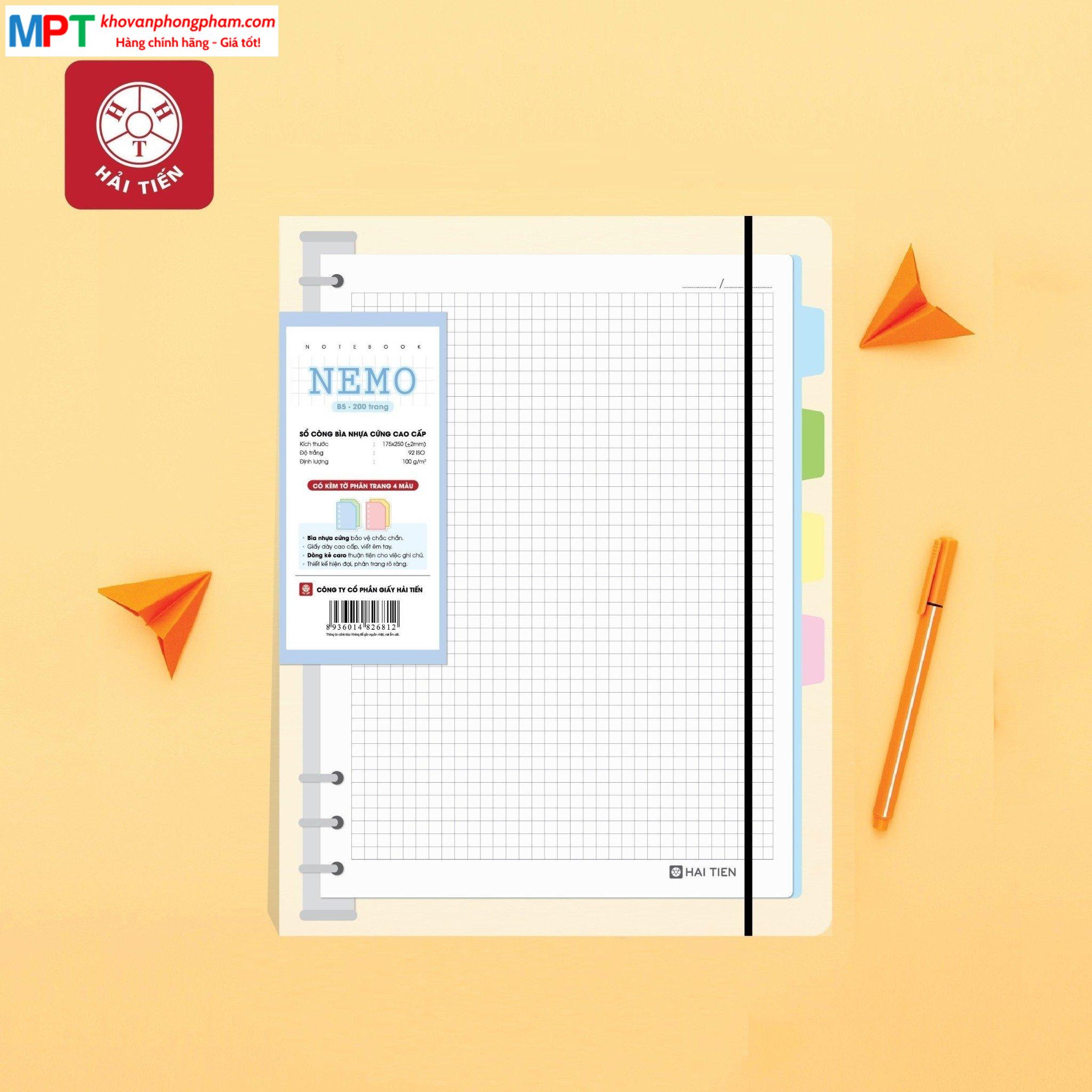 Sổ còng bìa nhựa cứng NEMO 200 trang 6812 kèm phân trang 4 màu - Dòng kẻ Caro (Khổ B5 - 9 còng)