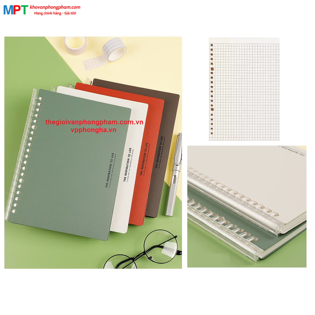 Sổ còng bìa nhựa cứng NEMO 200 trang 6812 kèm phân trang 4 màu - Dòng kẻ Caro (Khổ B5 - 9 còng)