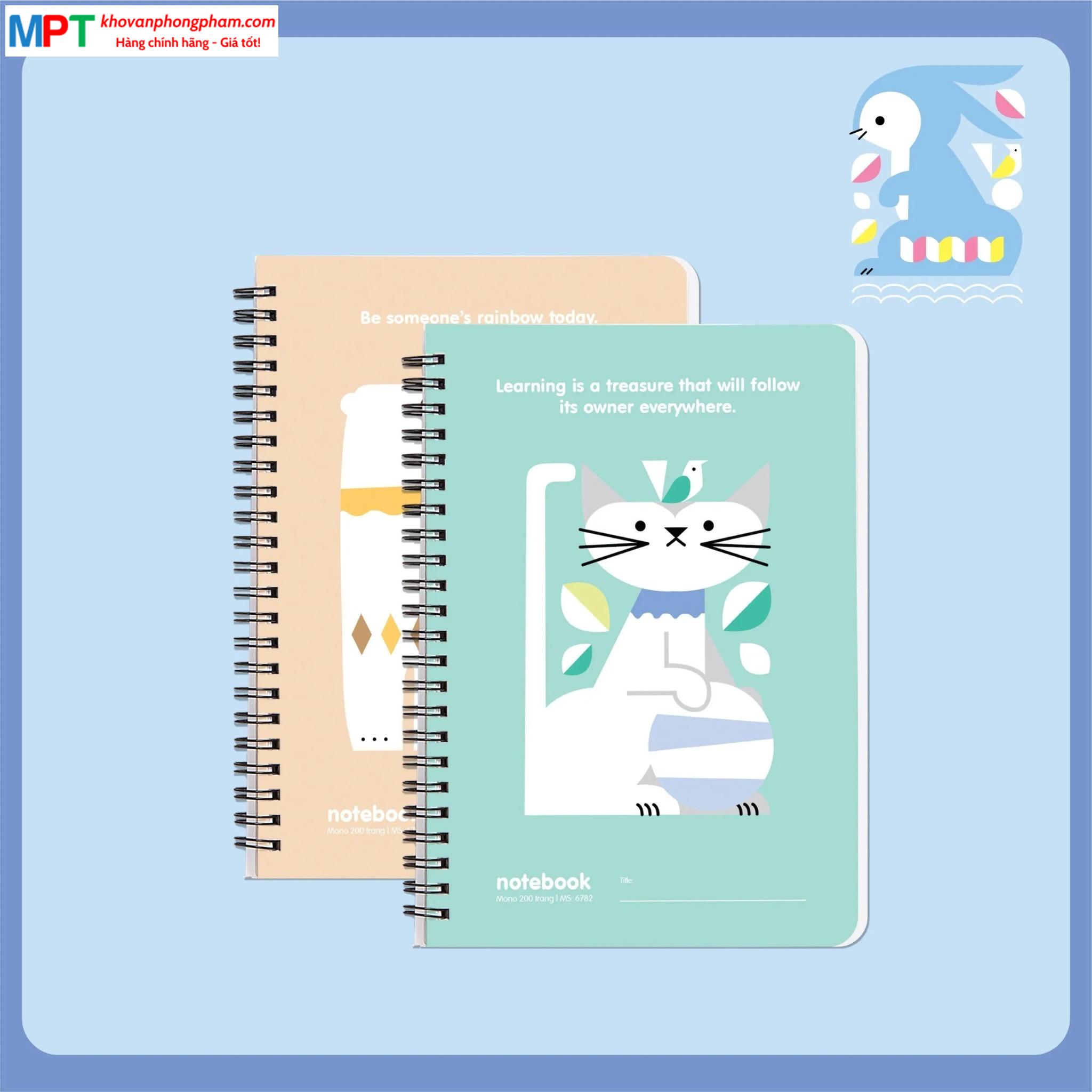 Sổ lò xo Hải Tiến A7 MONO 200 trang 6843 - Giấy vàng chống loá, kích thước 70 x 100mm