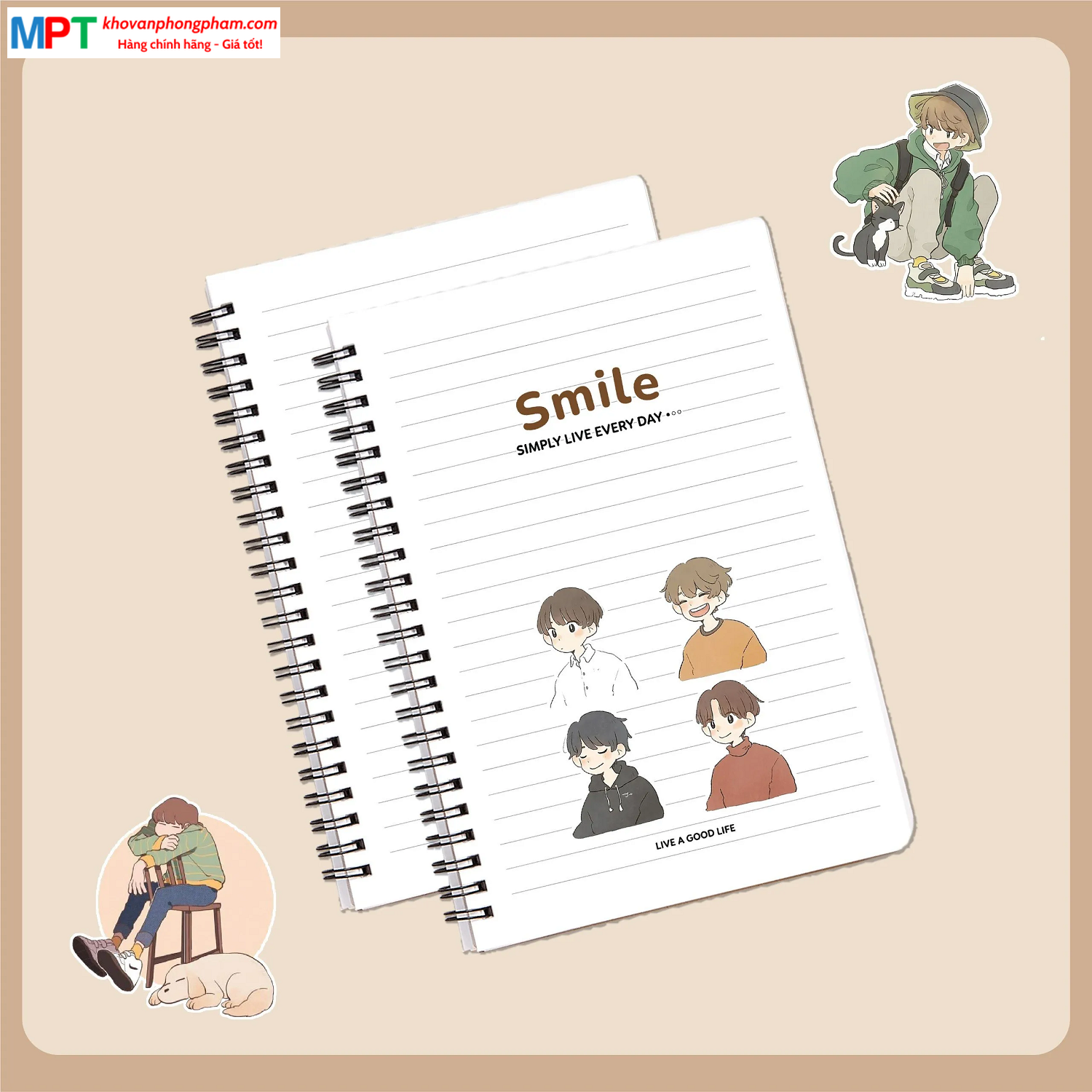 Sổ lò xo Hải Tiến bìa bồi cao cấp Smile khổ A5 200 trang 6744 - Định lượng dày 80g/m2