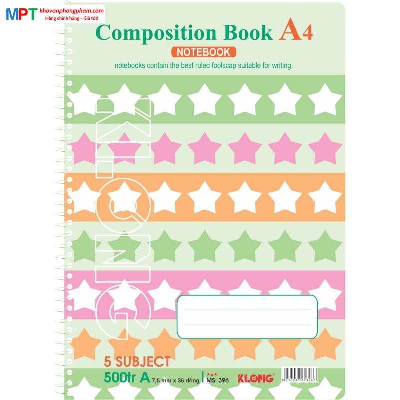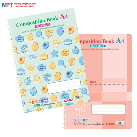 Sổ lò xo Klong đơn A4 500 trang 396 - Định lượng 58gsm - Kích thước 210x297mm