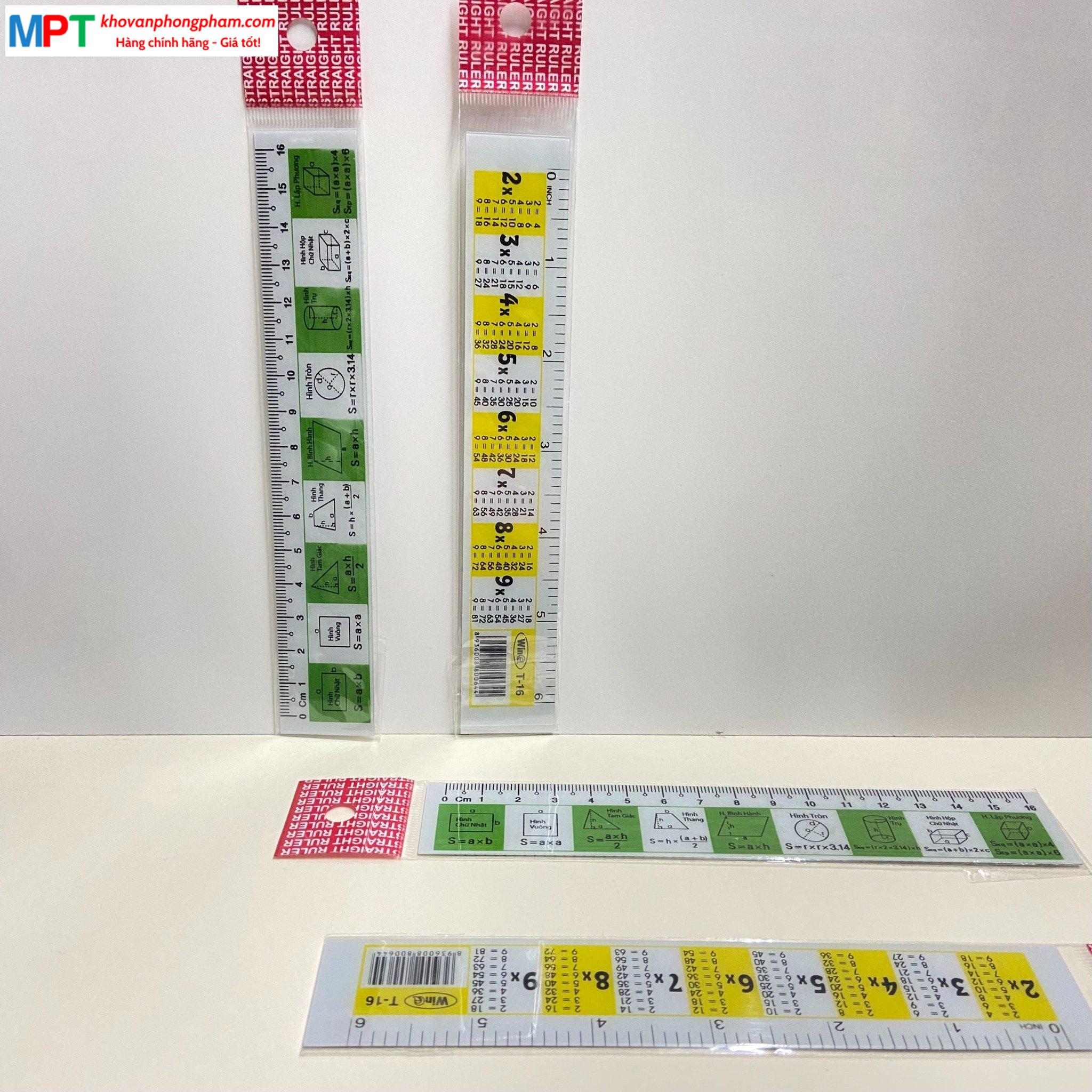 Thước 16cm WinQ T-16 (kết hợp bảng cửu chương và công thức toán học)