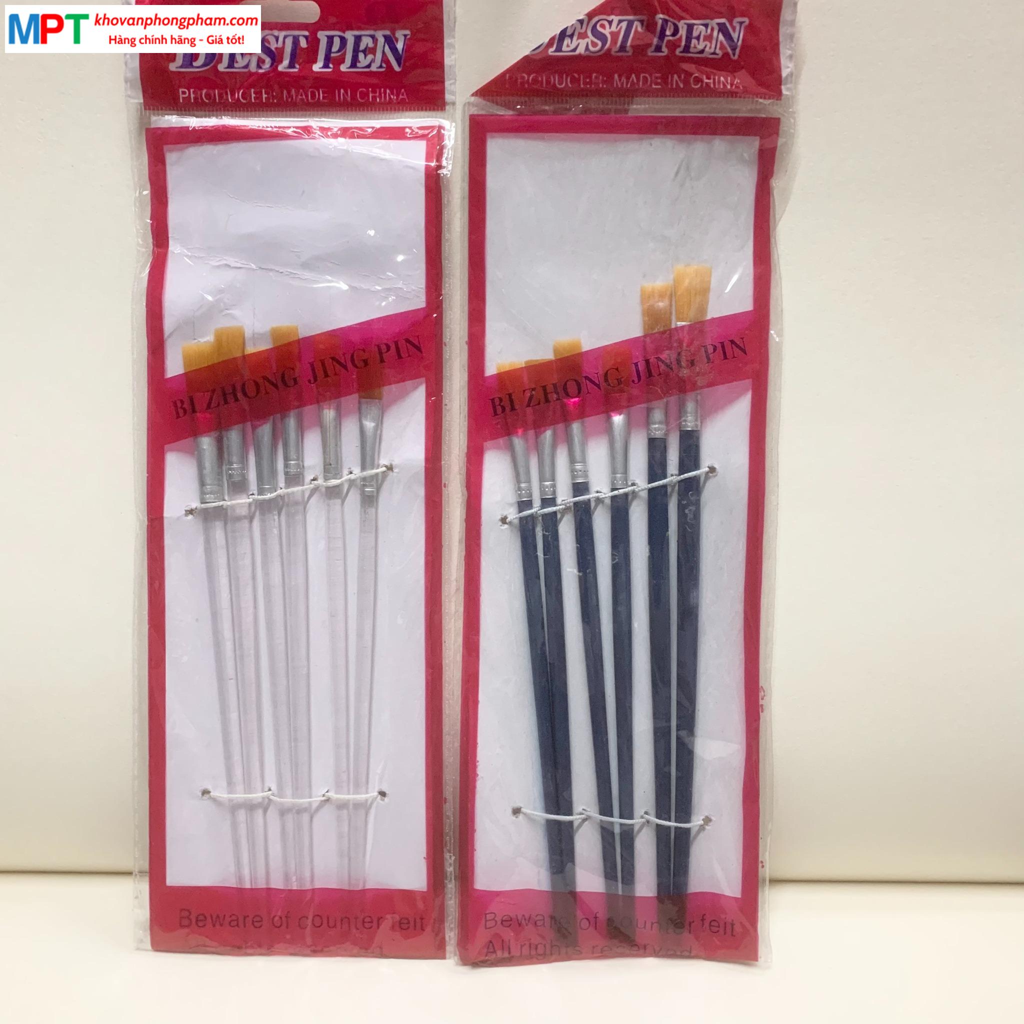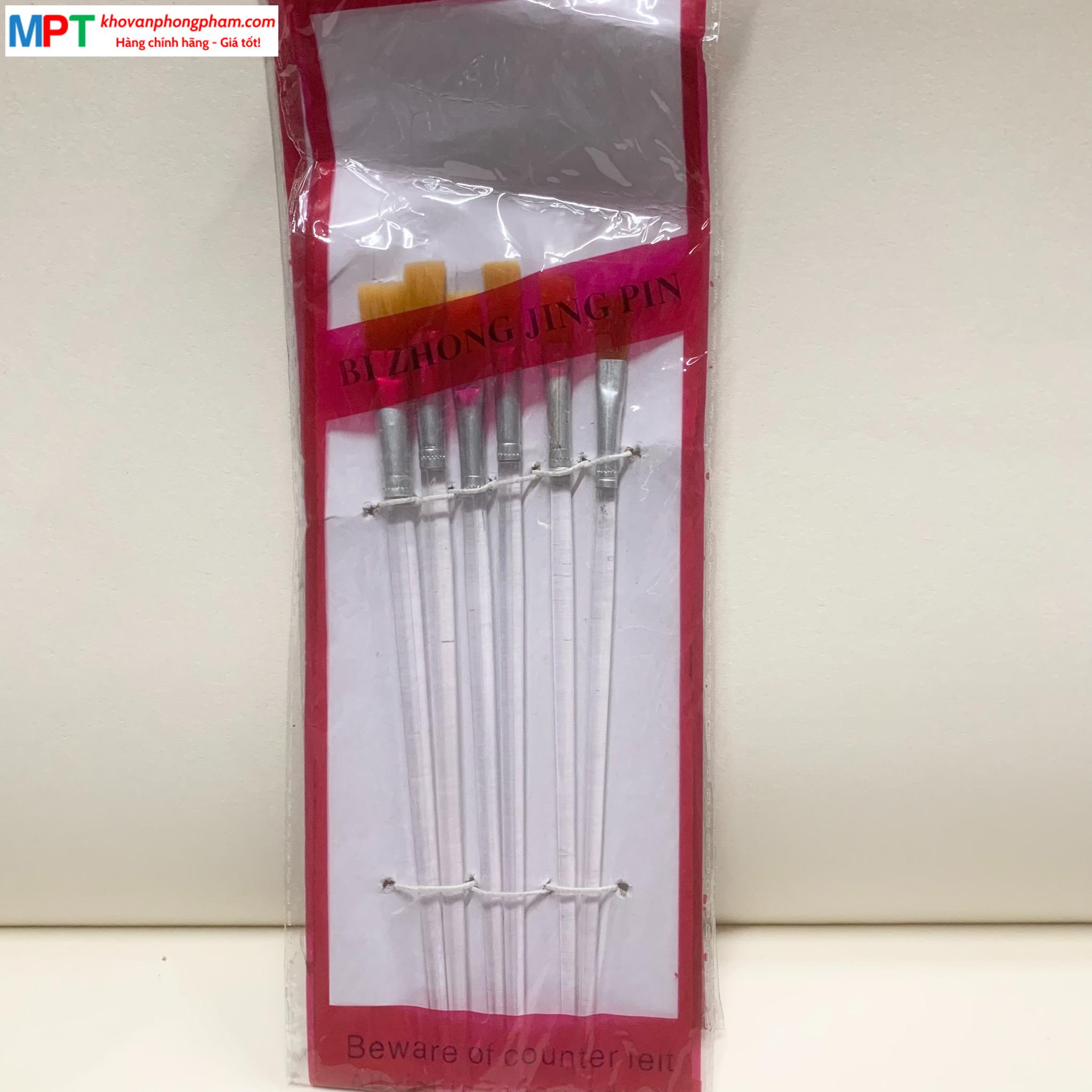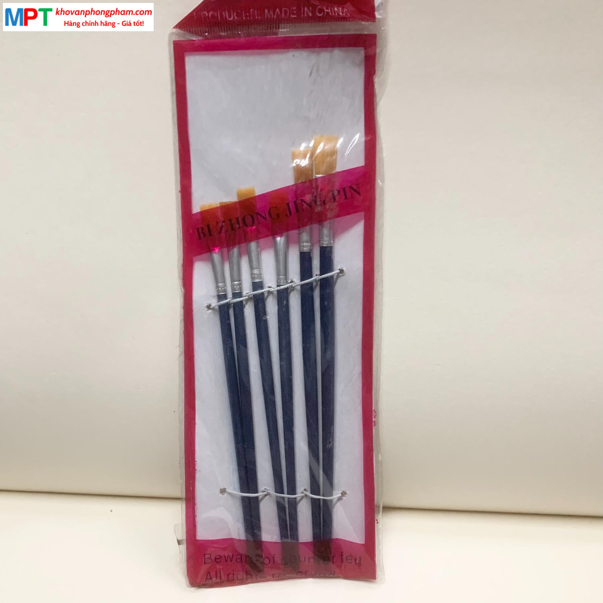 Túi 6 bút lông, cọ vẽ bé loại dẹt