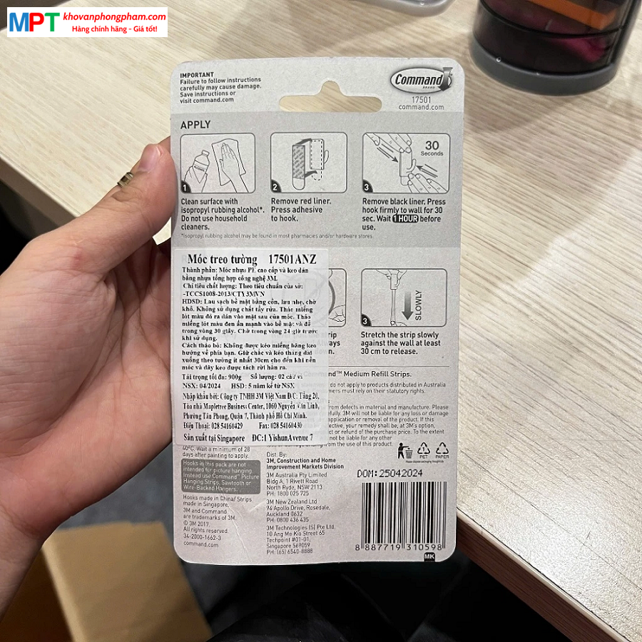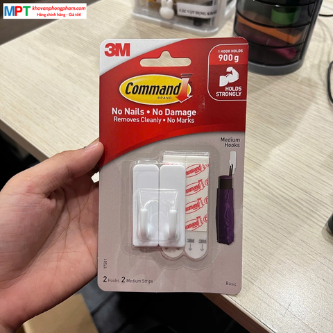 Vỉ 2 móc dán tường kiểu vuông 3M COMMAND™ 17501ANZ - Chịu trọng tải 900g - Nhập khẩu bởi 3M Việt Nam