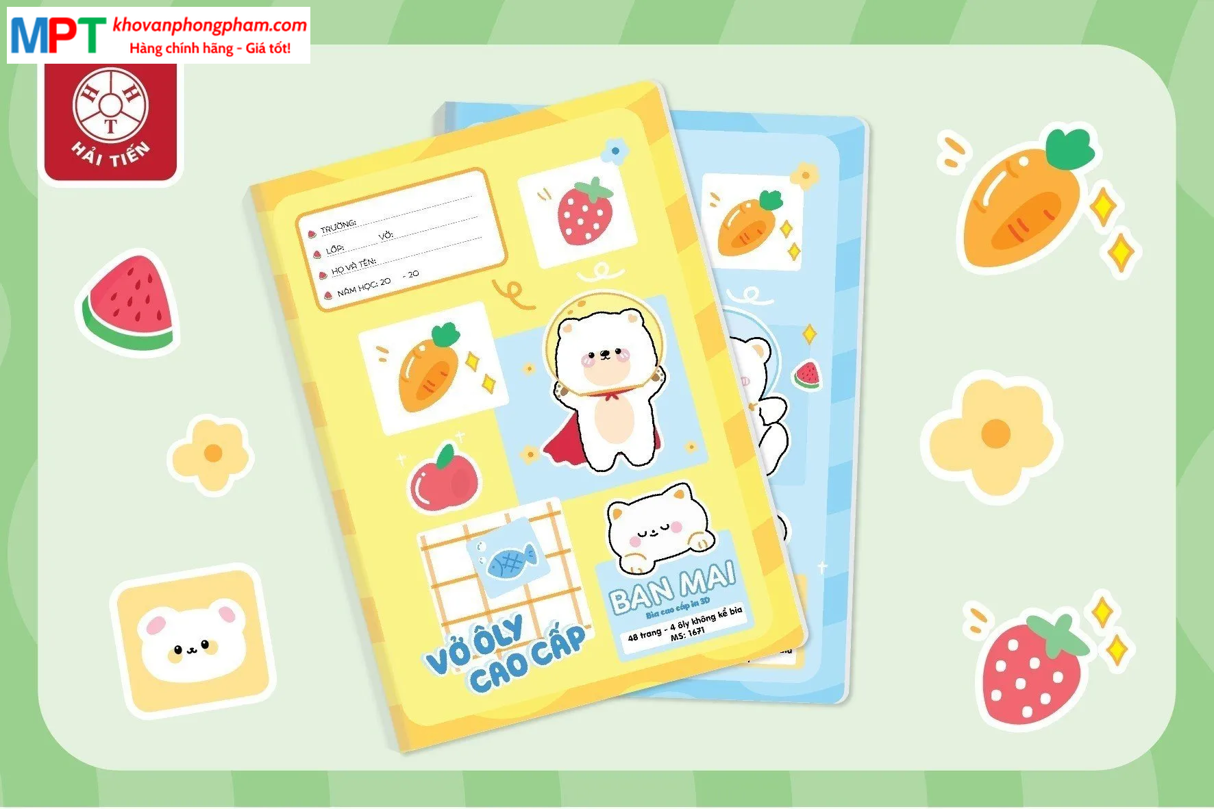 Vở 4 ôly Ban Mai 48 trang 1671 bìa 3D - Giấy định lượng 120gsm - Mua 10 quyển tặng 01 bút chì