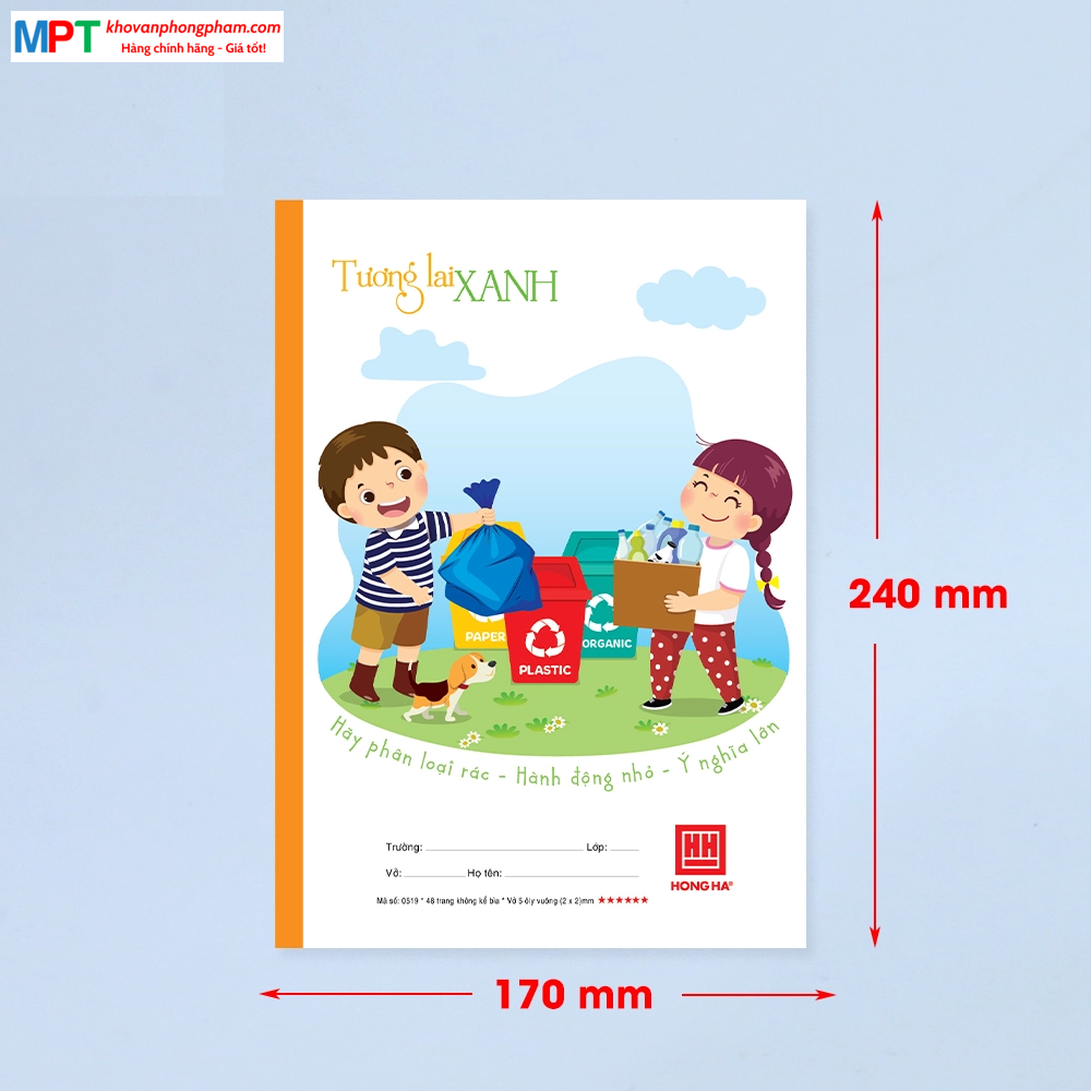 Vở 5 ô ly Hồng Hà 48 trang Tương Lai Xanh 0519 - Định lượng 100gsm - Mua 10 quyển tặng 01 bút chì