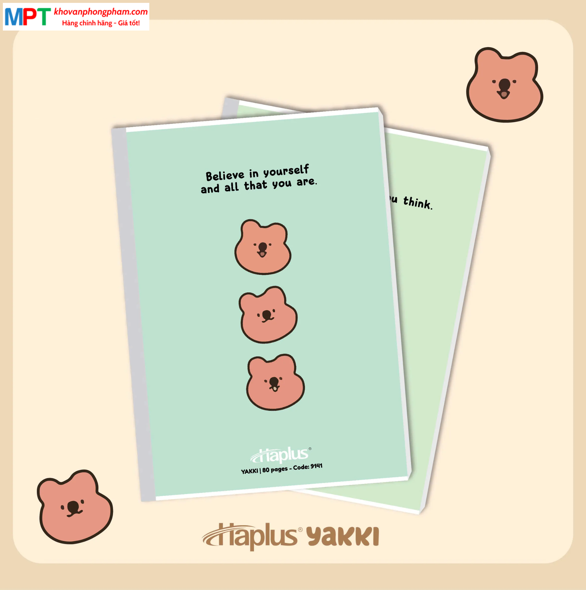 Vở kẻ ngang Haplus 80 trang YAKKI 9141 - Định lượng 60gsm, giấy chống lóa - Mua 10 quyển tặng 1 bút bi